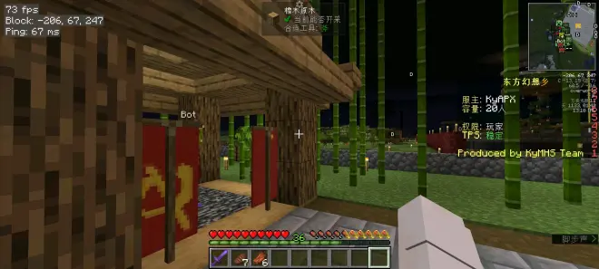 服务器名称【东方幻想乡生存冒险服务器】 服务器版本(离线/手机可进): 1.16.5(forge和fabric不限) 服务器目前处于发展阶段,人挺少的,地狱和末地资源马上重置,多处地形还没探索。少数资源设施初步完成 服务器有少量辅助插件,不过并不影响服务器纯生存玩法 服务器IP(有白名单): e1.kaifuxia.com:35147 群号:577091686