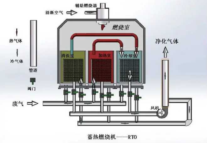 由于节能效果明显 ,RTO 技术在有机废气治理中得到了广泛应用 。RTO设备适用于处理低浓度、大风量的工业有机废气,对挥发性有机物的去除效率较高,两室RTO装置VOCs的去除率在95%—98%,三室RTO装置VOCs去除率可达98%以上,是目前我国有机废气治理的主要技术之一 。