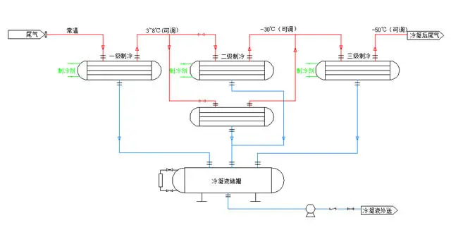 冷凝法就是将工业生产的废气直接引入到冷凝器中,经过吸附、吸收、解析、分离等环节的作用和反应,回收有价值的有机物,回收废气的余热,净化废气,使废气达到排放标准。当有机废气浓度高、温度低、风量小时,可采用冷凝法进行净化处理,一般应用于制药、石化企业。通常还会在冷凝回收装置后面再加装一级或多级的其他有机废气净化装置,以做到达标排放。