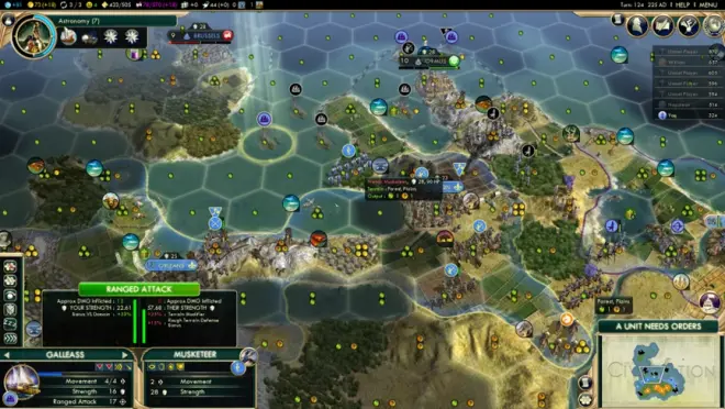 荷兰之前天文进启蒙,城邦的轻帆已经探过来,不过东边这个是首发,显然并不靠近另一大陆。那边最弱的AI已经被抬走了,留下我这倒数第一和同样分数不高的法国互相折磨,当然那些宗教分虚高的也未必多强。