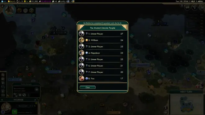 遇到刚失去首都的单城葡萄牙,行凶的应该是南边的罗马。世界最强的宗教是葡萄牙的,说明前几名的分数水分不算很高,问题有点大。