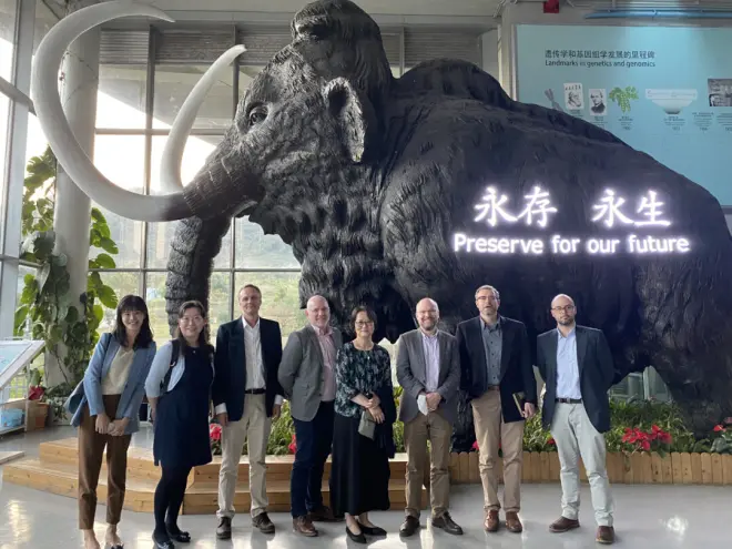 2月15日,中国医学科学院牛津研究所英方所长董涛教授、牛津大学纳菲尔德医学部执行主任戴伦·纳什(Darren Nash)等研究人员一行来访华大集团深圳总部,华大集团董事长、联合创始人汪建,华大生命科学研究院院长徐讯,副院长顾颖等热情接待。一行参观了华大新总部时空大楼、深圳国家基因库和华大万物试验基地,双方就时空组学病理研究、实验室平台建设、科研课题最新进展等话题充分交流看法。