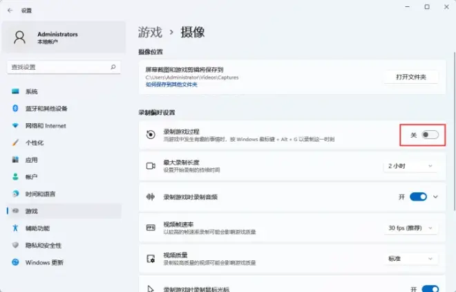 把这个windows自带的游戏录制关掉,打开游戏的时候就不会有弹窗提示了,win10和win11均适用