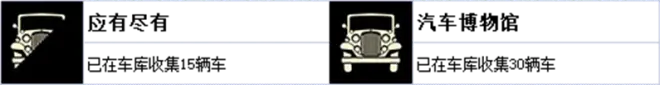 收集明信片并找到隐藏车辆也可以增加车库的收集详见成就“追逐”、“头号偷车贼”。