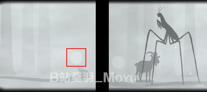 画面往右移,点击白色光亮处,进入下一个场景发现一只羊,鼠标狂点羊,把大蝗虫吸引过来,等大蝗虫把羊吃了之后点地上的骨头拿到羊眼睛。