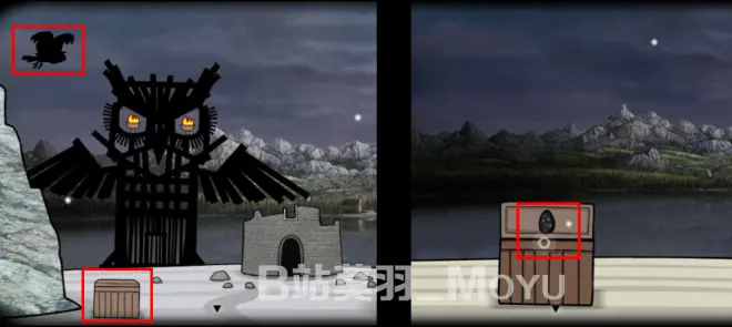完成小游戏后前往湖边,点击飞过的鸟解锁成就The Owls are not what they seem,打开左下角的木箱拿到骸骨,解锁成就Your Mother's Bones,拿走骸骨后多点几次木箱得到一颗乌鸦蛋。