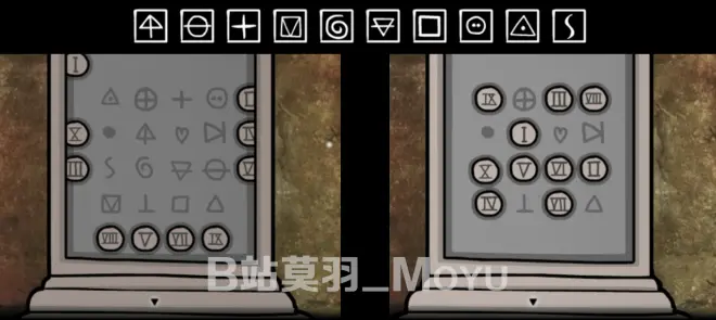 按照森林小屋墙上的提示转动轮盘,狮子的眼睛(一个点),牛的眼睛(两个点),鱼身上的刺(三条线),瓶子上的图案(瓶身四个点),秤上面有个V(罗马数字五)。输入正确出现一个标志,点击标志解锁成就The Ninth Symbol