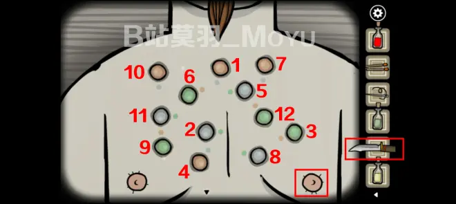 点叔叔,先解他身上的爆珠,顺序无所谓,点完一颗看提示的颜色和指引的方向,下一颗找那个方向同颜色的。解开谜题后出现一个红色的叉,用刀割开取出心脏。再点那个长有几根毛的不可描述的位置(啊这是什么恶趣味,PS我第一次听见它叫),多点几次解锁成就Touch the...