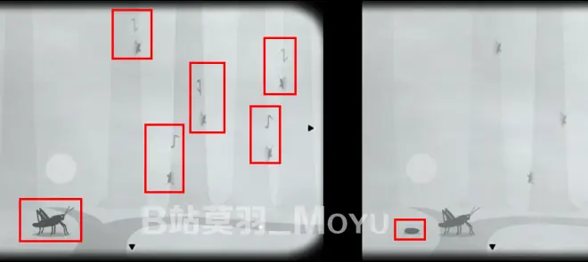 进入森林看见一只大蝗虫,先玩个游戏,点左下角最大那只,根据它发出的叫声点上面的小蝗虫,顺利过关大蝗虫下了一个蛋,多点几次让它破壳,出现一只超级大蝗虫,解锁成就Locust Egg