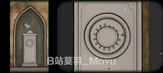 鸽子要转圆盘,先往右转,右边4个缩进去,再往左转,以此类推,顺序是右4左3右3左3右1左1右1,拿到鸽子面具。