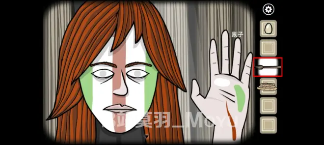 根据之前墙上的提示,用刷子蘸妹妹手上的颜料画出正确的颜色。