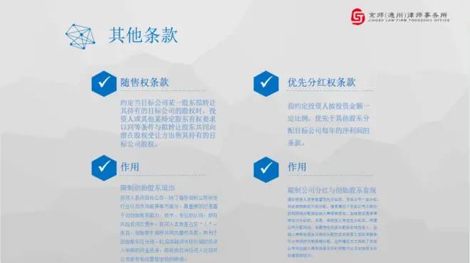 主讲人刘清源律师在本次讲座中结合股权投资并购的核心条款深入浅出地为大家进行了授课,通过结合俏江南的真实案例,对公司股权投资并购的条款进行了解析,同时对于多个条款的结合应用也举出了具体案例,使大家对公司上市潜在的风险产生了思考,并对股权投资并购具体环节有了深切的认知。