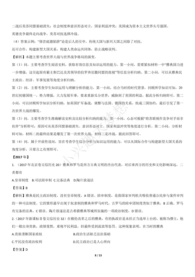 五年高考历史真题分项版解析专题01 古代中国的政治制度