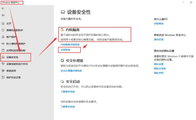解决方法一:关闭内核隔离