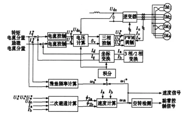 无速度传感器矢量控制方式对交流牵引电机转矩进行精确有效控制:使用霍尔元件检测逆变器各相输出电流(电机电流),并将其分为转矩分电流和励磁分电流来分别进行控制,具有快速响应、高精度的优点。