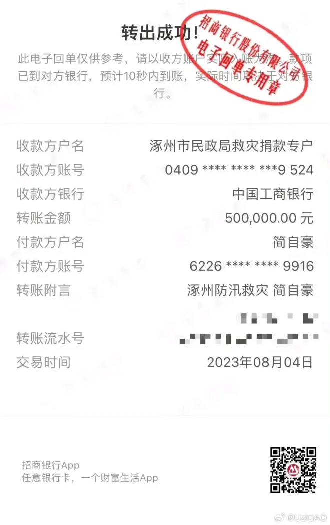 Uzi向河北涿州受灾地区捐助50万元的评论 (共
