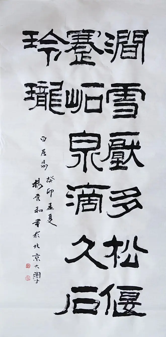 中国书法家协会理事刘文华先生曾评价杨秀和书法:“杨秀和教授隶书朴茂奇肆,瑰异凝重,再现汉碑简牍的法度和韵味。”