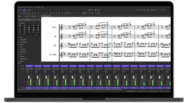 MuseScore 4 是一款全功能的打谱软件,在官网上可以找到扩展的音色库。就个人而言,软件自带的"塑料"味儿音色库其实就足以应对写作了。打谱、出谱,再到实录一气呵成