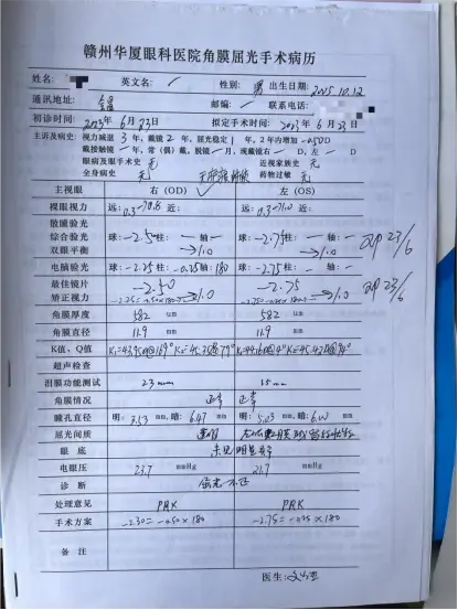 在家人的陪伴下,小旭来到赣州华厦眼科进行了手术前的检查,术前检查项目很多,加起来有20多项,好在全程都有护士一对一的帮助指引,检查过程很顺利,不到两个小时就做完了全部检查。黎新医生分析了小旭的检查报告,告诉小旭他的近视度数不算高,角膜厚度582μm,是很适合做近视手术的。接下来,黎医生仔细伟为小旭分析了他适合做哪种手术。最后,小旭选择了PRK手术方式。