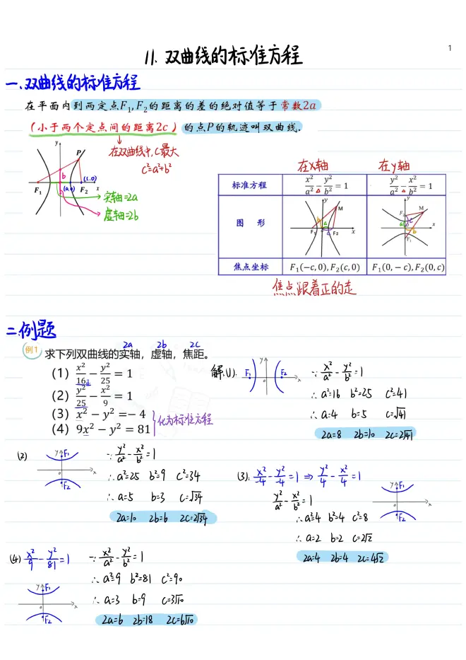 新高二&选修一预习第十一讲:双曲线的标准方程的评论 (共