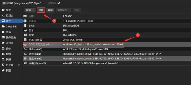 接下来直接启动虚拟机,安装步骤和物理机安装网心x86一样,可以参考网心官方教程或者我以前写的文章。安装好后关机,把ISO驱动器给移除了免得再从这里启动。