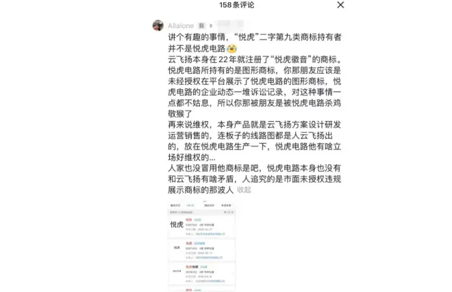 2.作为一个10亿级别的公司,盈利是其次,合法合规是首要的,悦虎电路为了规避这种风险,停止了与云飞扬的合作,收回了商标使用权。并开始对市面上未经授权使用悦虎电路商标的这些商家清算,所以才有某博主发的他那朋友被索赔5w的截图。(这波算是杀鸡儆猴了)