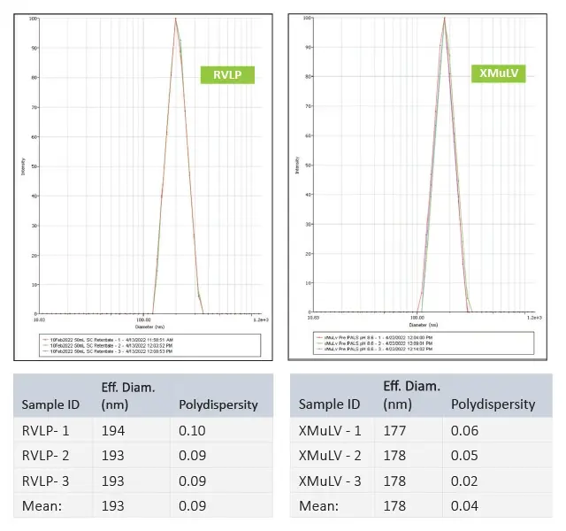 RVLP与XMuLV的直径(fig.1) 和净表面电荷 (fig.2)的特性非常相似。