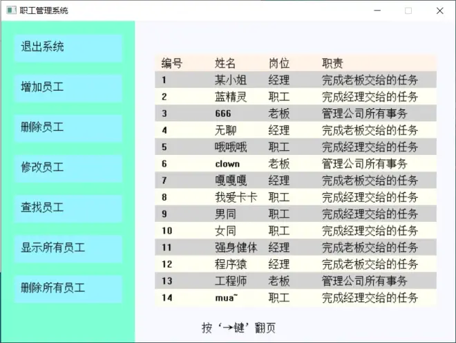 //cout << "欢迎来到职工系统:\n0.退出系统\n1.增加职工信息\n2.删除离职职工\n3.修改职工信息\n4.查找职工信息\n5.显示所有职工\n";