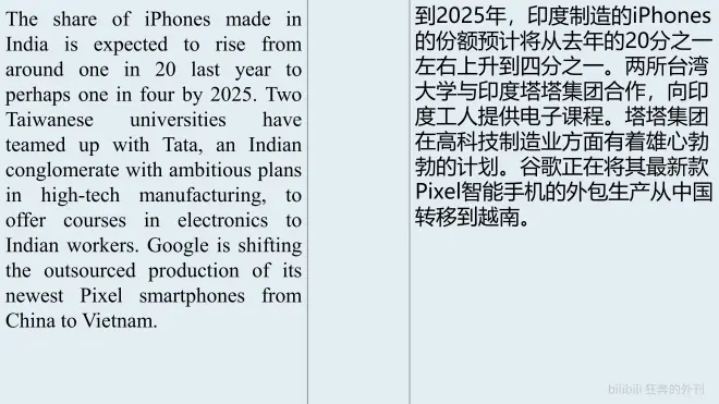 现在,越来越多的非Altasia公司开始关注该地区,一般是通过与中国台湾的合同制造商。为苹果组装小配件的富士康、和硕联合科技和纬创资通等公司正在印度工厂大举投资。到2025年,印度制造的iPhones的份额预计将从去年的20分之一左右上升到四分之一。两所台湾大学与印度塔塔集团合作,向印度工人提供电子课程。塔塔集团在高科技制造业方面有着雄心勃勃的计划。谷歌正在将其最新款Pixel智能手机的外包生产从中国转移到越南。