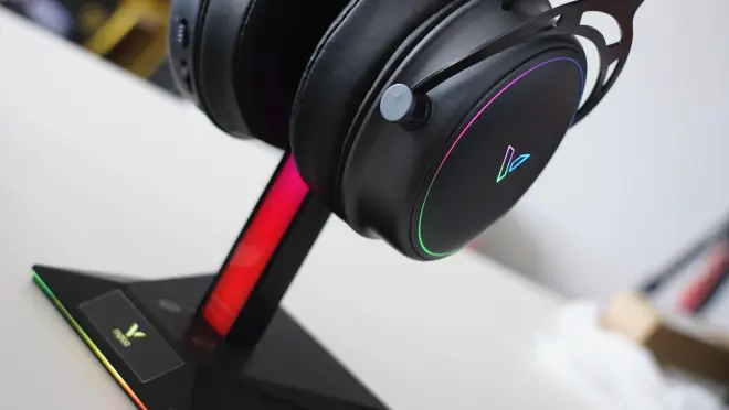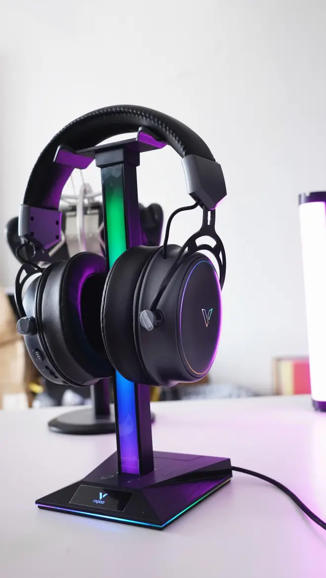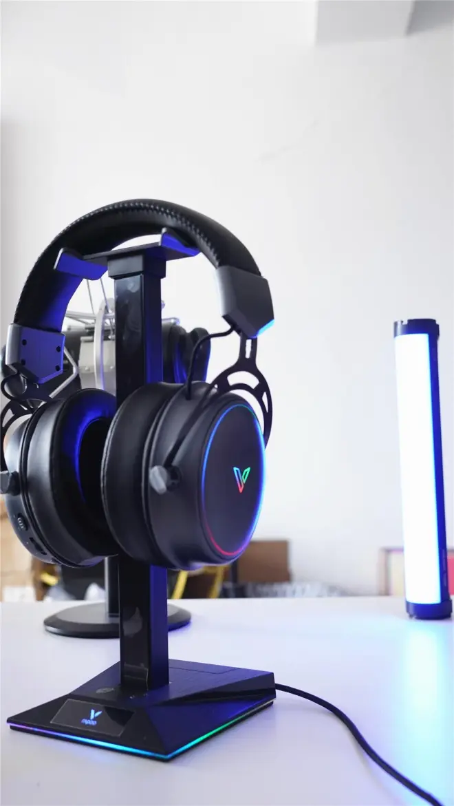 VH 10RGB游戏耳机支架能够根据环境音律呈现出幻彩效果,酷炫且好玩,用来做耳机的收纳支架,非常的不错。