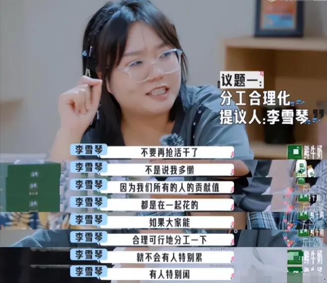 有一次,成员李雪琴提出想要进行家务的合理,分工安排,以此避免分工不均的场面。