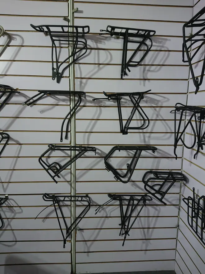 现场看到不少自行车货架,也有不少是焊接结实且设计漂亮的。