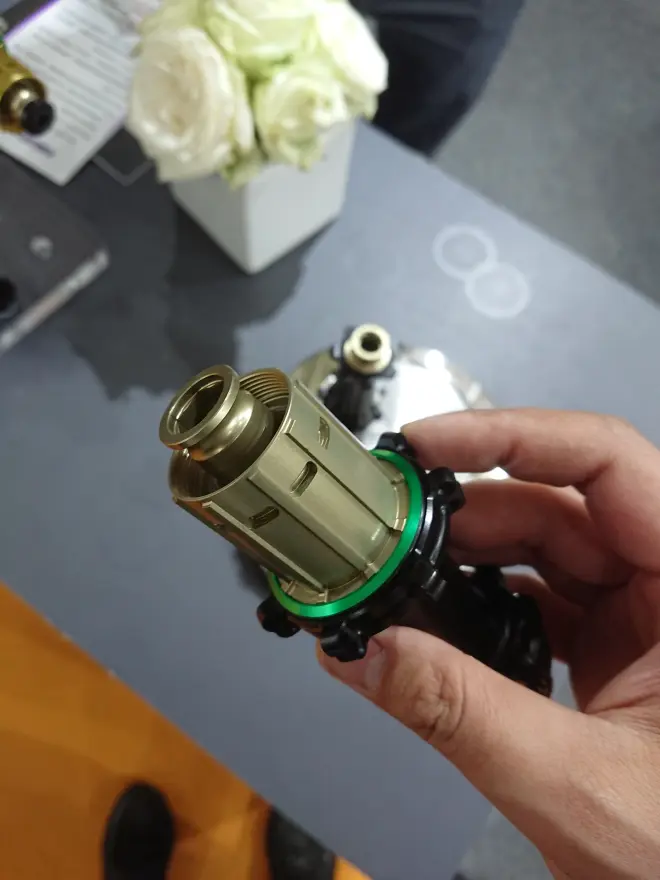 质感非常好,塔基和花鼓主体之间这绿色铝圈下应该有油封,防尘放水。