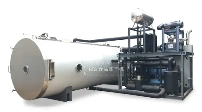 食品冻干机是食品真空冷冻干燥机的简称,用于含水食品物质进行先冻结成固态,而后使其中的水分在真空环境下从固态升华成气态,以除去水分而保存物质的一种干燥装置。根据食品冻干机的结构、原理及应用可以组建成各种食品冻干加工生产线,用于保存天然原有食品营养成分,保持原有食品物质的色、香、味、形等基本不变,无添加的大量食品冻干加工生产使用。经过食品冻干机处理可以提高食品安全和价值。