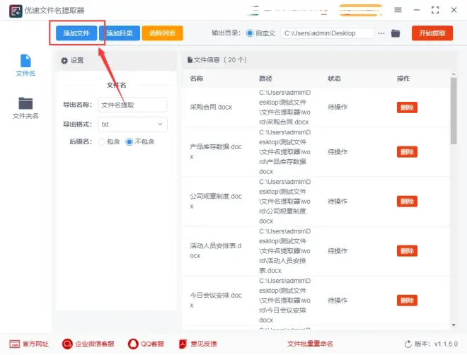 怎么批量提取文件名称?最近小编遇到了一个问题,就是关于如何批量提取文件名称,因为小编的电脑里面有很多的文章,现在需要对所有的文件进行汇总处理,把所有的文件名称都提取出来,放到文档中这样方便观看和对比,但是由于文章实在是太多了,小编如果要一个个的进行操作,不知道要进行到猴年马月去,于是就问了一下程序员朋友有什么好的办法可以使用,他给我讲了一下使用批处理命令说很简单的,只需要一个bat文件就可以了,但是本人不懂编程觉得太复杂了,于是就找了一款软件来使用。