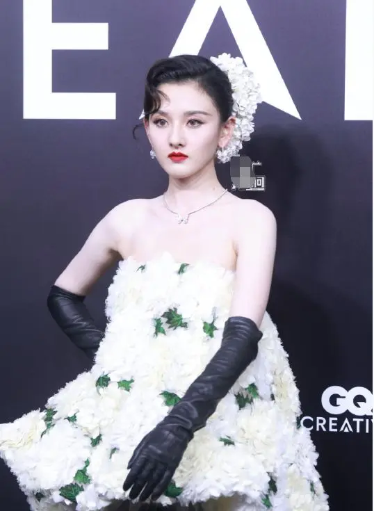宋祖儿的公主裙很美,但戴了一副黑色皮手套,就让人有些难以理解了。