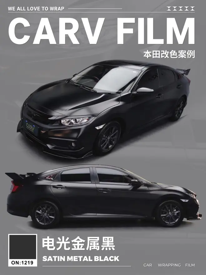 » 本田思域卡孚改色膜电光金属黑,这“黑丝”能不能火