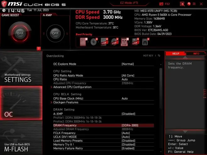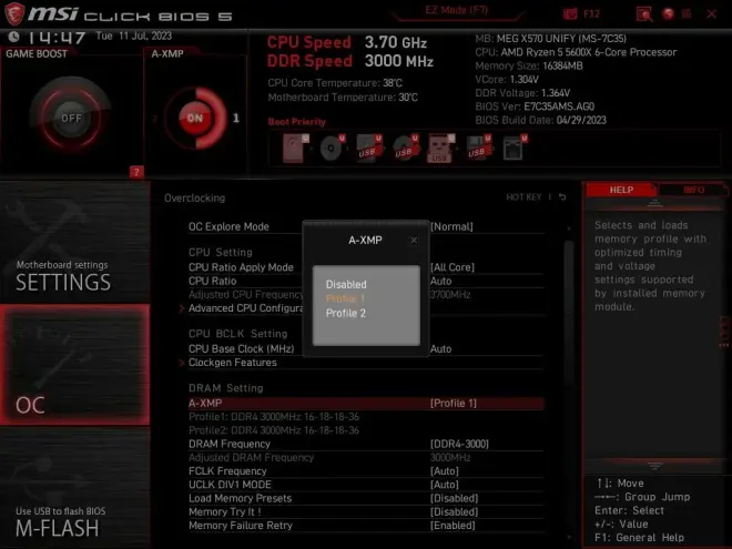 同样的在OC菜单里也可以选择,这里的选择更加直观,笔者使用的MEG X570 UNIFY主板支持XMP,内存也支持,这里就变成可选择项目。