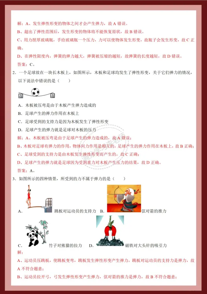 通过使用这份资料,学生可以更加熟悉常考的弹力题型,提高对概念和公式的理解和应用能力,增强解题的自信心。考前练习一遍,将有助于学生在考试中更好地应对弹力相关题目,取得优异的成绩。