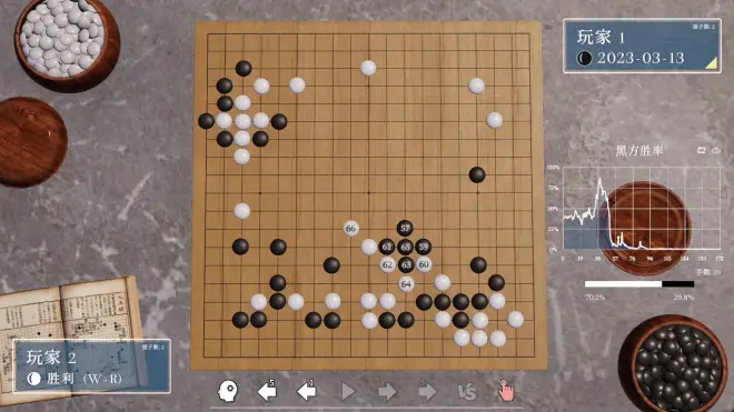 AI老师还是觉得走重了还帮黑右边加厚,黑左上飞还有20左右胜率。