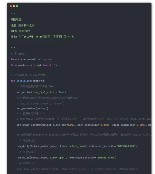 OK,买哪支股票,以及何时买,何时卖,这两个问题解决了,我们就可以开始写代码了。