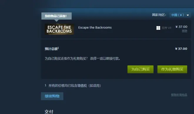 3:打开之后,就到了Escape the Backrooms游戏页面,选择加入购物车。