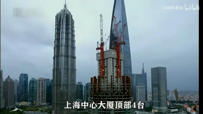 1️⃣上海中心大厦顶部4台500吨的塔吊正准备爬升