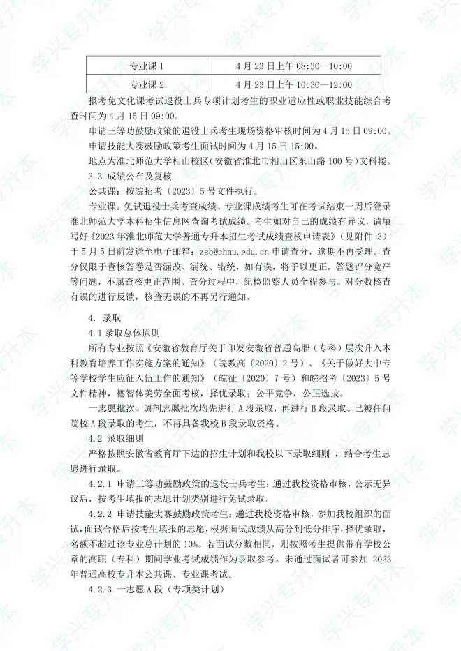 » 淮北师范大学2023 年普通高校专升本招生章程