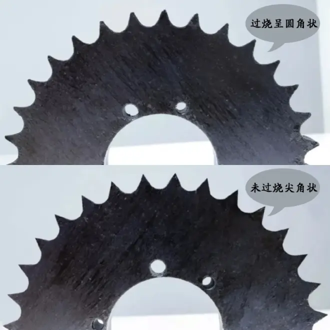 切割碳钢时可以使用更高功率激光器,采用亮面切割工艺,可以有效避免过烧,且此种切割工艺可以切出无毛刺、切面光亮的成品。高功率可有效避免过烧现象。