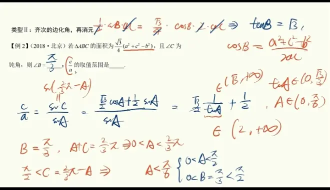解题思路:这道题没有给具体的角,但是它可以通过边角互换得到角的关系。然后就可以接着按照上面的思路流程进一步往下做,最后得出结果。