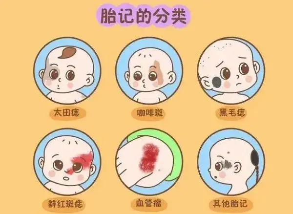 通常情况下,胎记分为两种:一种是色素沉淀、一种是血管瘤。如果是轻微的胎记,则会随着孩子年龄的增长而消失;