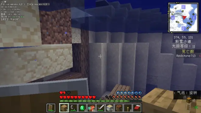 后来,发现了一个大洞穴。怪不是一般的多,当然也让我发现了发光鱿鱼和大量铁锭,金锭,红石,青金石......和从天而降的苦力怕!