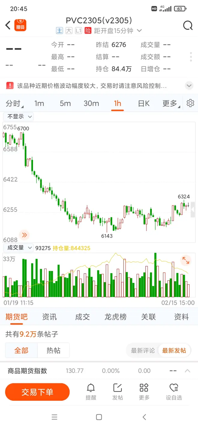 日线偏空,一小时震荡,比大盘弱 2月15 大盘涨0.05,日线震荡,一小时区间震荡,夜盘强震荡,前早盘趋势上涨,后早盘午盘下跌 pvc 比大盘稍强 螺纹钢 比大盘强 纯碱 比大盘很弱 燃油 比大盘稍强 沥青 比大盘稍强 豆粕 比大盘弱