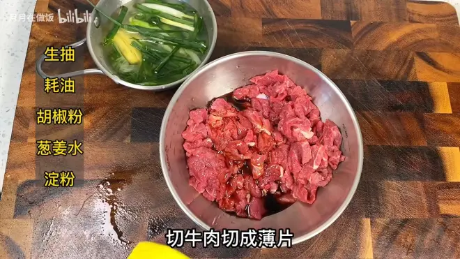 3.腌制牛肉,抓拌均匀腌制15分钟